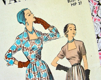 1950s Vintage Posh Slim Dress With Oval Or High Neckline Detachable Collar Vogue 9561 Sewing Pattern Bust 31