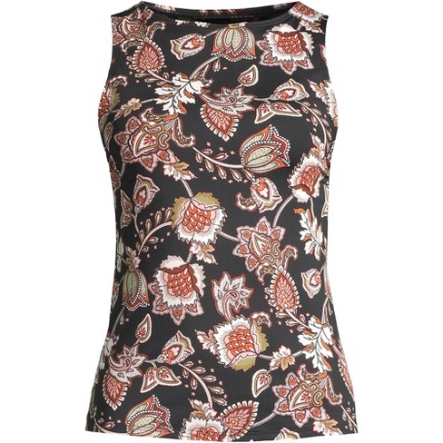 Lands End Lands End Women S Chlorine Resistant High Neck Upf 50 Sun Protection Modest Tankini Swimsuit Top 12 Black Etched Jacobean 12 Black Target