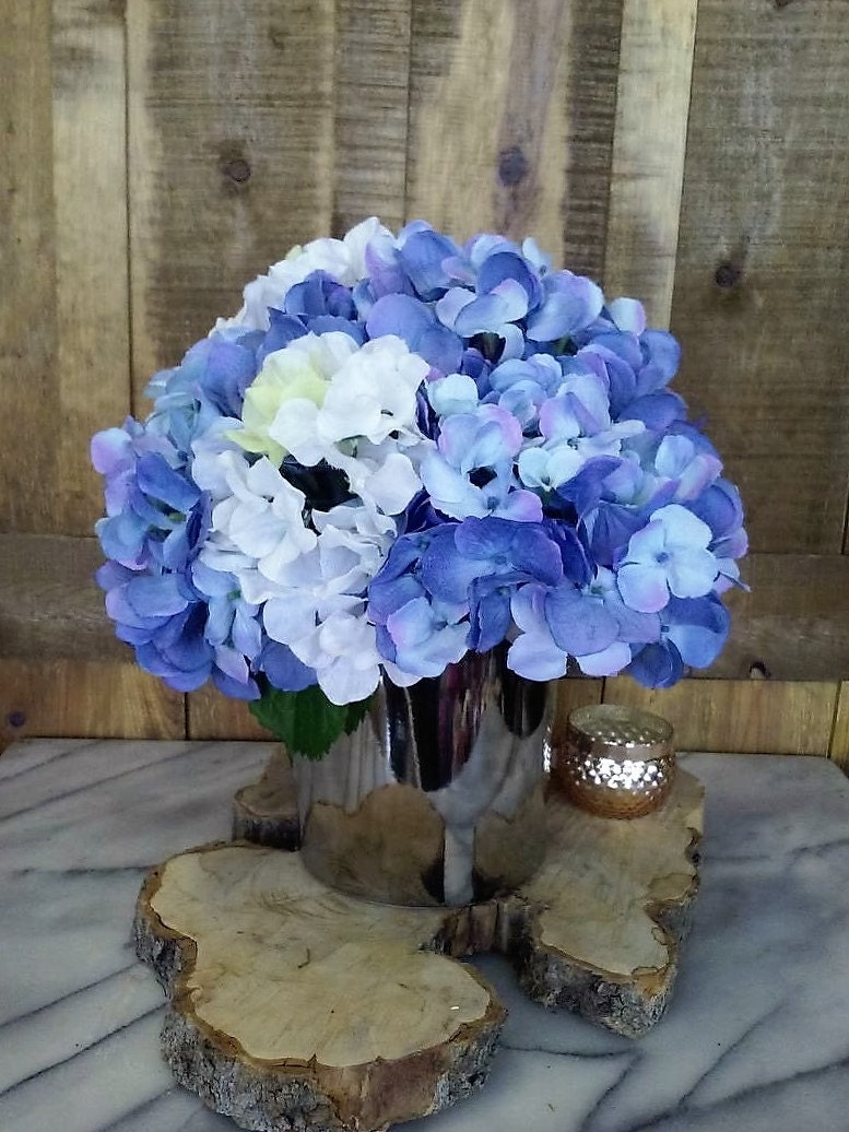 Faux Blue Hydrangeas In Silver Cylinder Vase Artificial Etsy Uk